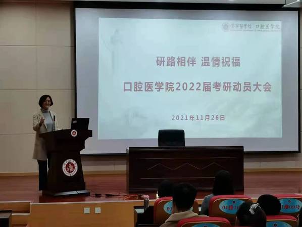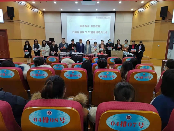 为深入推进“我为群众办实事”实践活动,在2022年研究生入学考试倒计时30天之际,为了帮助考研学子坚定目标、调整心态、树立信心,11月26日口腔医学院为2022届考研学子发放暖心礼包。学院院长、党总支副书记耿海霞,副书记刘春华,全体辅导员及2022届考研学子参加了活动。活动由党总支书记张良主持。