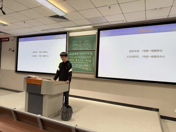 培训会上,口腔医学院青年志愿者协会负责人童湛同学向志愿者们系统讲解“附院义工行”志愿服务活动的核心流程与关键注意事项,重点强调了医患沟通礼仪、服务时长规范及医疗辅助操作的安全准则。同时,负责人围绕导诊引导、器械整理、患者咨询应答等具体岗位职责展开实操讲解,叮嘱志愿者要举止得体、耐心细致,准确传递健康常识,妥善回应患者诉求。此外,培训会还设置互动交流环节,负责人们针对性解答志愿者疑问,分享志愿服务中的实用经验,并对此次培训进行总结动员,鼓励志愿者们以饱满热情投身服务活动。