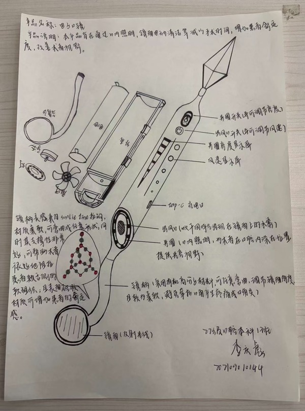 以创促新,展口腔科技之翼。学院创新开展“科技入齿 手绘精医”科技设备创新手绘建模设计大赛,鼓励学生结合口腔医学发展需求,运用创新思维设计口腔医疗设备。进一步点燃了口腔医学专业学子投身医疗科技研发的热情,为培养兼具专业素养与创新精神的新时代医学人才注入了强劲动力。